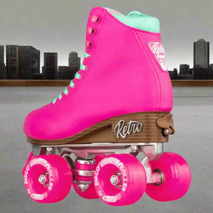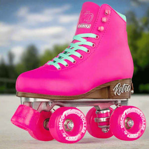 Roll in vintage flair with RETRO skates — glitter wheels, soft lining, and smooth ABEC-7 bearings for every adventure.
