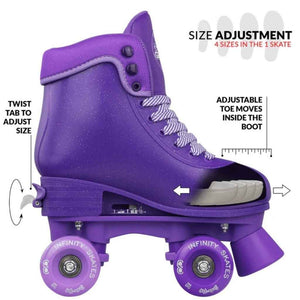 Soda Pop Magic Size Adjustable Roller Skates. Enjoy the pure fun of roller skating with the Soda Pop Size Adjustable Roller Skates by Infinity Skates. Bright, colourful, and built with care, these skates combine eye-catching style with long-lasting durability and outstanding performance. Featuring a sturdy nylon boot and cuff, they offer the perfect level of stiffness and support to suit skaters of all experience levels.