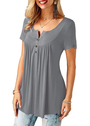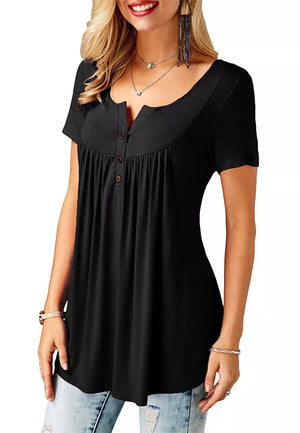 Womens Pleated Short Sleeve Loose Summer Top