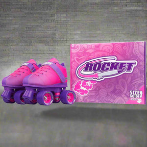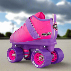 Rocket Roller Skates, available in Black or a Pink-Purple fade colour combination, deliver excellent performance and outstanding value, making them a great choice for skating enthusiasts. These skates feature a classic rink style paired with a sneaker-like boot design, offering a secure and comfortable fit. Generous padding ensures comfort even during extended skating sessions.