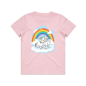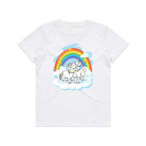 Transform your child's outfit into a vibrant and joyful statement with this colorful t-shirt that showcases the bond between best friends - a unicorn and a lambicorn. Perfect for gifting to your little one and their BFF, this t-shirt exudes a cool and appealing design. Made of soft yet durable cotton, it can withstand rough play and frequent washing without losing its charm.